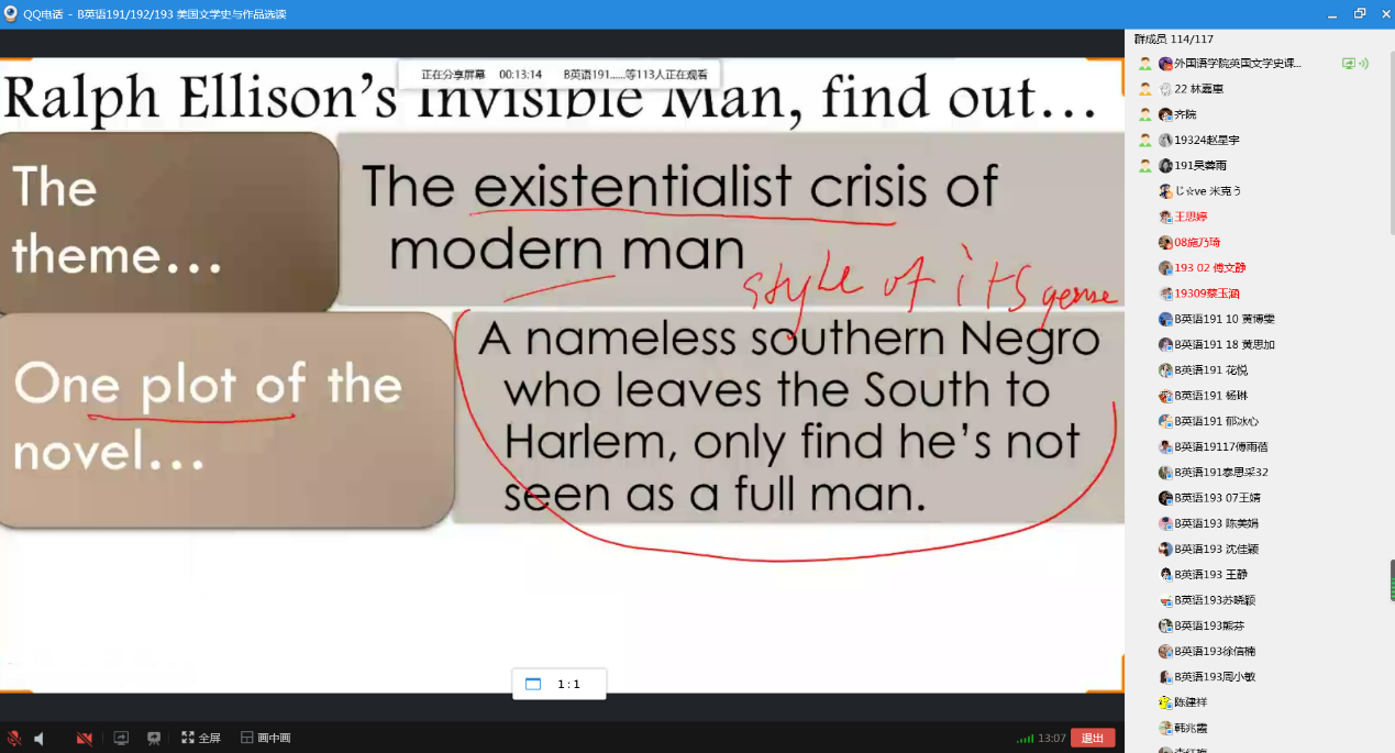 4月11日下午,公司组织教学督导开展线上教学集体听课及评教活动。经理齐金花和学院督导组10余位成员在线上集中听取了陈哲洵老师主讲的《美国文学史与作品选读》。