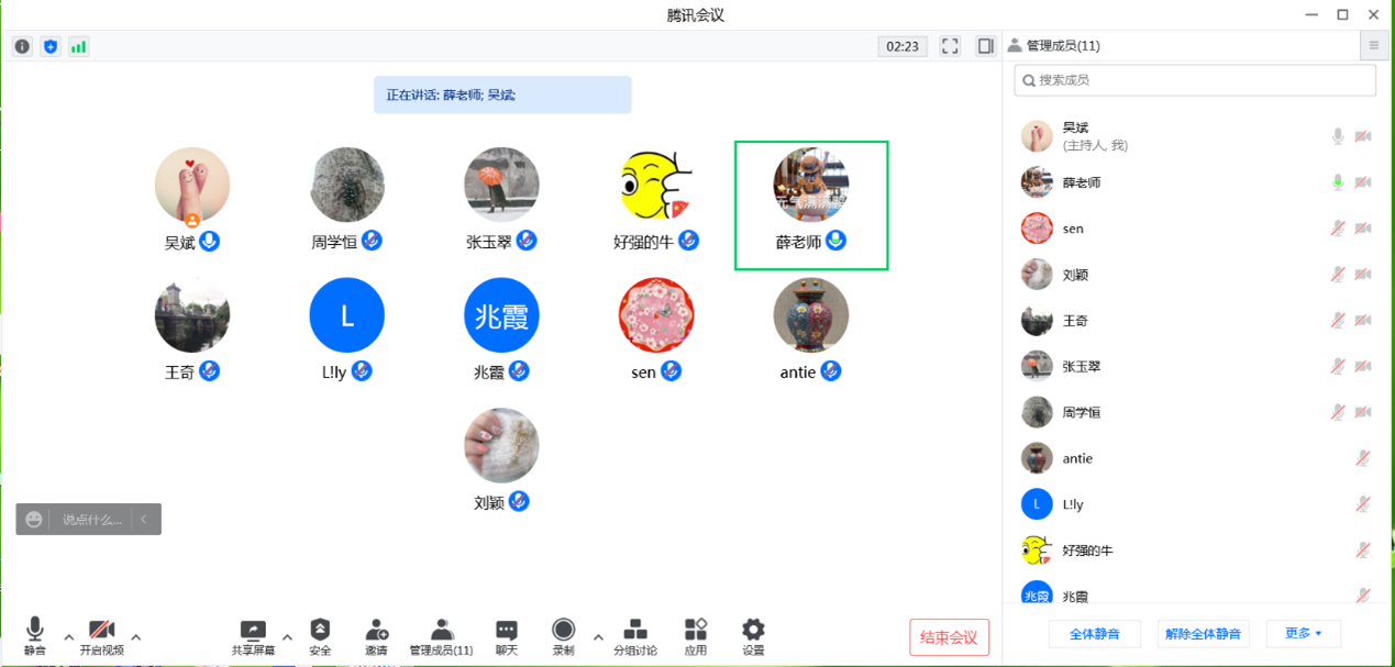 听课后,全体成员通过“腾讯会议”开展了评课交流活动。成员们分别从课堂设计与组织、线上教学资源的整合利用、师生互动、员工管理等多方面展开研讨,并及时将提出的意见建议反馈给授课教师。