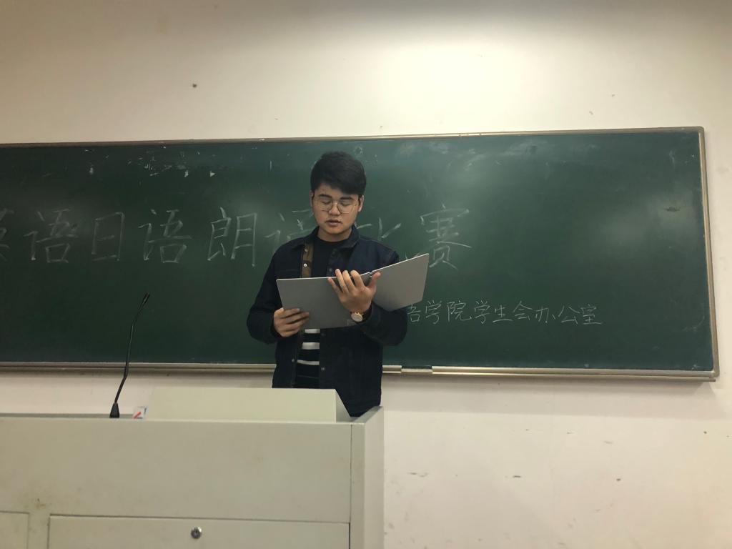11月22日晚,在博学楼B104,公司举办了英语日语朗诵比赛。共有21名来自2018、2019级的同学参加本次比赛。