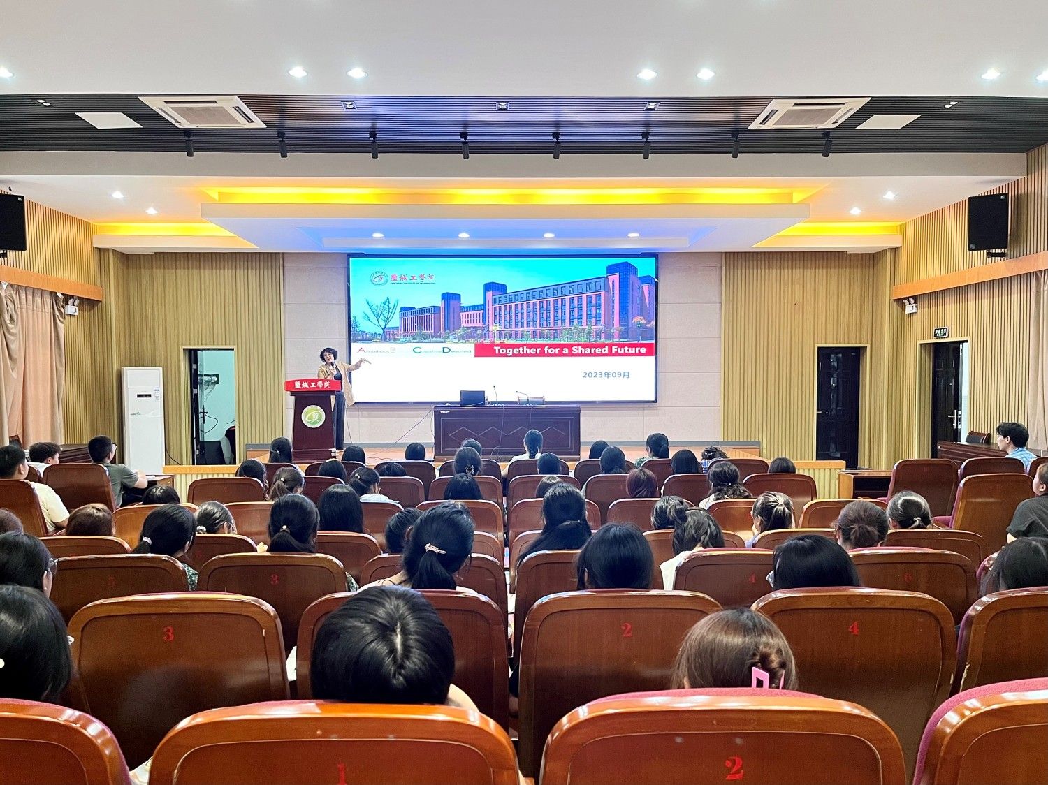 齐金花首先代表公司党政和全体老师欢迎2023级新生的到来,随后她以奥运会中“Together for a Shared Future”标语为引,从学业规划,自我认知,目标设定和资源利用四个方面对新生科学规划四年大学学业做了详细的讲解,内容涵盖学业规划的定义、意义和长期目标、短期目标等。同时,她还引导新生正确分析自己的兴趣、优势和目标,明确个人的学习倾向和职业方向,并学习如何充分利用学校和外部资源,建立良好的专业学习支持系统。
