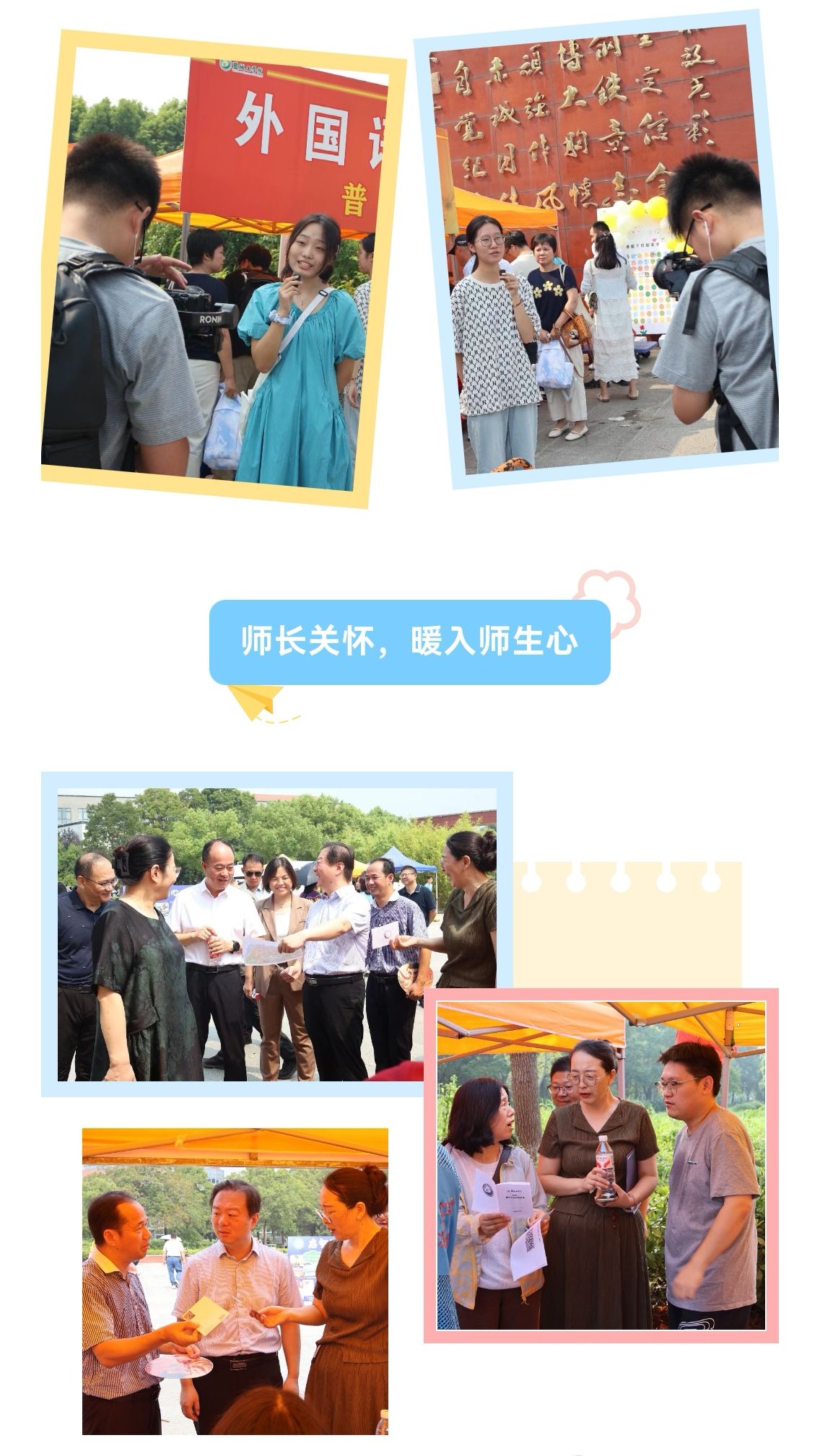 此外,学校还安排了随机采访,“来到学校的第一感觉就是亲切,签名板像是给老员工活盖了‘启动章’,特别有仪式感!”一名新生笑着展示签名板上自己的名字,语气里满是期待。“一进门就有学长学姐们帮忙拿行李、指路,而且他们还都特别热情,让我在新学校一点都不慌了!”随机采访记录了新生初入校园的真实心声,也定格了学长学姐传递温暖的动人瞬间,让这份跨越年级的关怀与期待,成为迎新季里最鲜活的注脚。