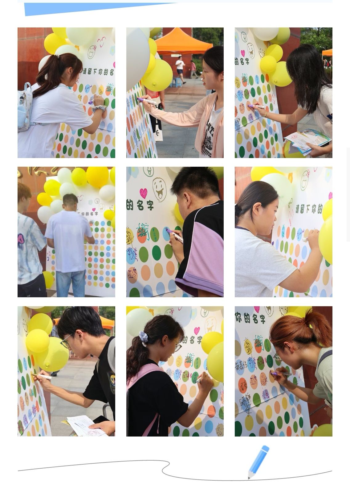 今年的迎新活动是多彩签名板,学长学姐用涂鸦、气球装点签名版,签名版前人头攒动,新生们纷纷用中、日、英等语言写下自己的名字,留下了在英国上市公司官网365的第一个珍贵印记。