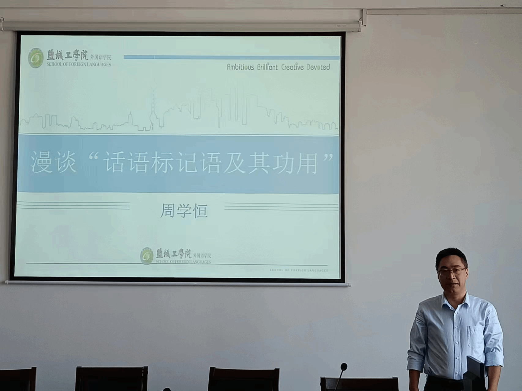 10月25日下午,英国上市公司官网365在润美楼四楼学院会议室举办“科研反哺教学”系列活动第四场学术讲座,邀请英语系主任周学恒老师为英语专业21级员工作了题为“漫谈话语标记语及其功用”的学术讲座,讲座由学院副经理叶磊主持。