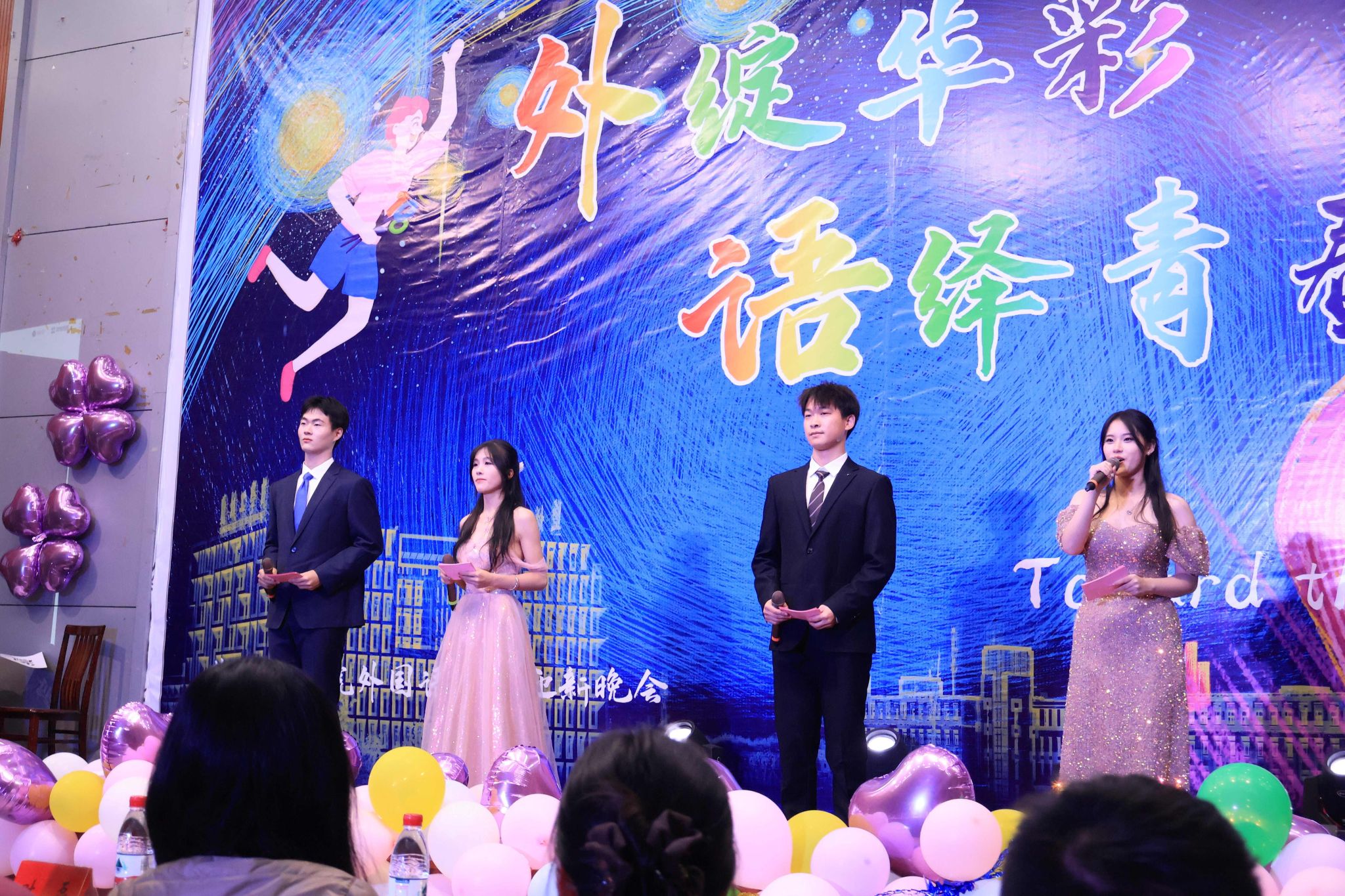 在一阵动感十足并震撼人心的音乐中,飒爽飘逸的爵士舞蹈拉开了迎新晚会的序幕,每位舞者洋溢着活力和青春,瞬间点燃整个会场氛围;歌曲优美动听并且风格多样,多种语言的歌曲将外院专业特色展现的淋漓尽致;小品更是用巧妙的幽默元素在给观众带来欢乐的同时还充分揭示生活道理;第一次登上外院荧幕的幕布剧一展外院员工的创新能力,唯美又深刻的表演让大家眼前一亮。这些节目给现场的观众们带来了一场宏大的视听盛宴。