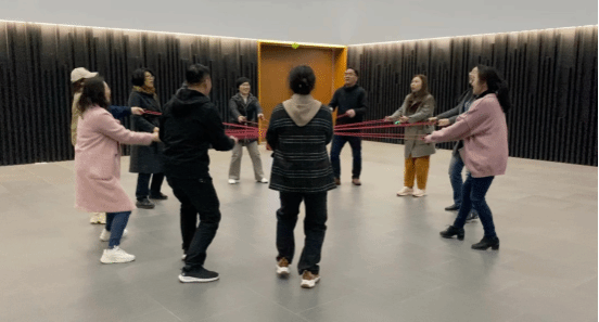 茶虽好,总有尽时。伴随着满身的茶香,大家又来到了团建活动室。在那里,团建教练带领着老师们戏耍着“春去秋来,花开花落”热身运动。欢声笑语中,大家一起玩起了“同心击鼓”游戏,球在鼓上跳跃着,火花在教师的眼中跳跃着,接球,接球,接球.....成功了,大家欢欣雀跃;球落了,捡球接着来,激情碰撞中彼此心心相连、目标一致,团队合作的协调默契度不断提升,归属感也越来越强。