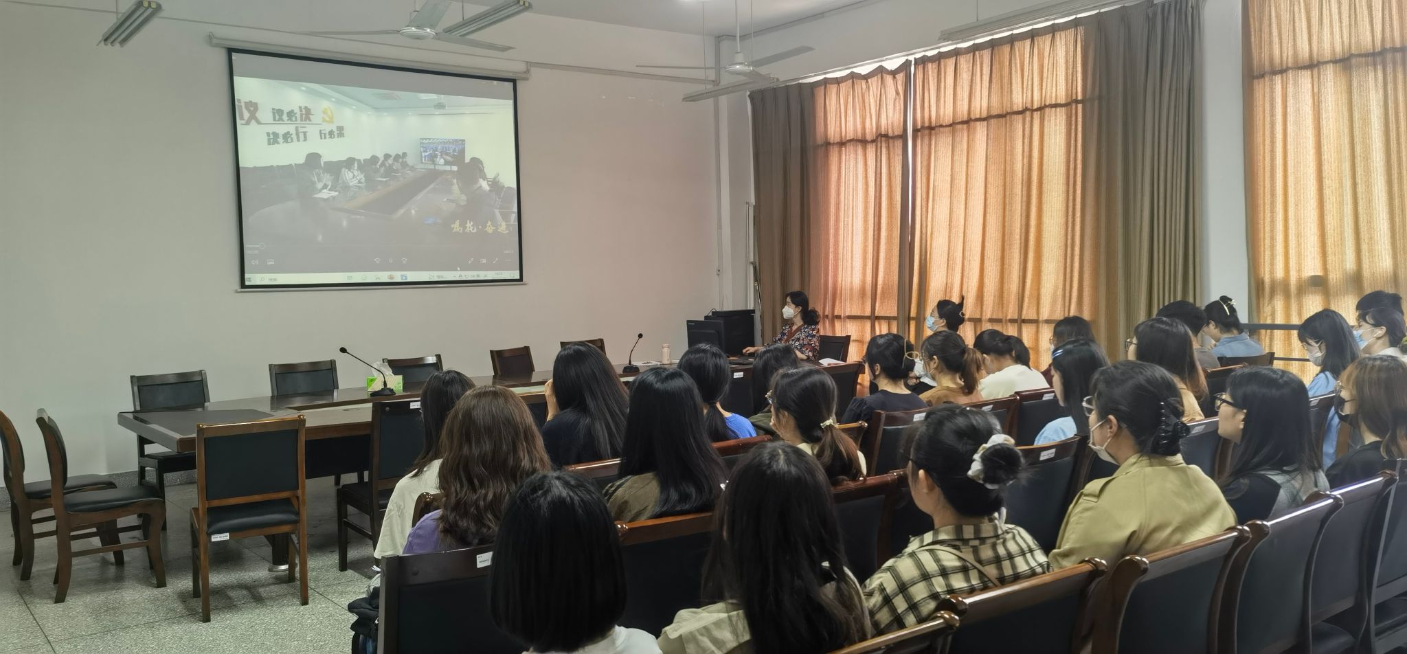 与会党员集中观看了江苏省主题教育主题片《嘱托,奋进》后,倪璞从党员同志应切实做到以学铸魂、以学增智、以学正风、以学促干等几个方面对与会师生提出恳切请求。她指出,党员师生要把习近平总书记对江苏工作重要指示作为一切学习、工作、生活的实践指引,青年师生更要契合时代树立远大理想,不负巨大关怀,不负殷切重托。她强调党员师生要有学思用贯通、知信行统一的律己要求,要能在日常工作、学习中干字当头、敢为善为,坚持党旗飘在一线、堡垒筑在一线、党员冲在一线,汇聚起“勇挑重担,走在前列的”强大合力,要能在学院事业高质量发展的重大进程中有所作为。最后,倪璞还就师生党员积极参与“一站式”员工社区党建等工作提出要求。