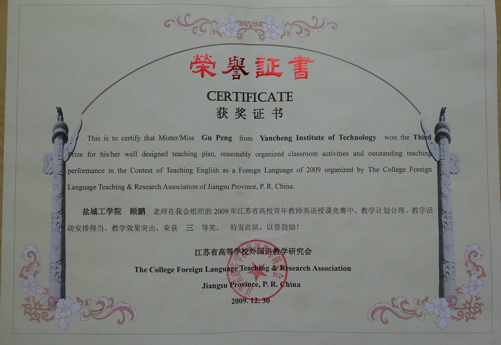 省高校英语授课竞赛奖之一