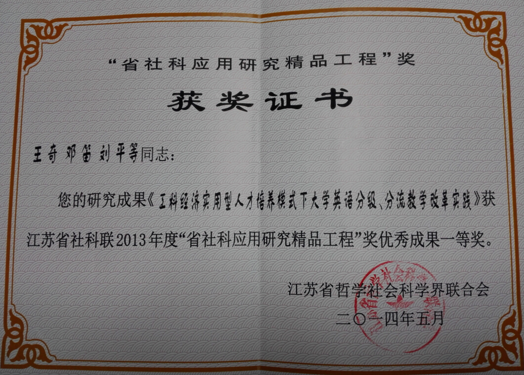 省社科联优秀成果一等奖